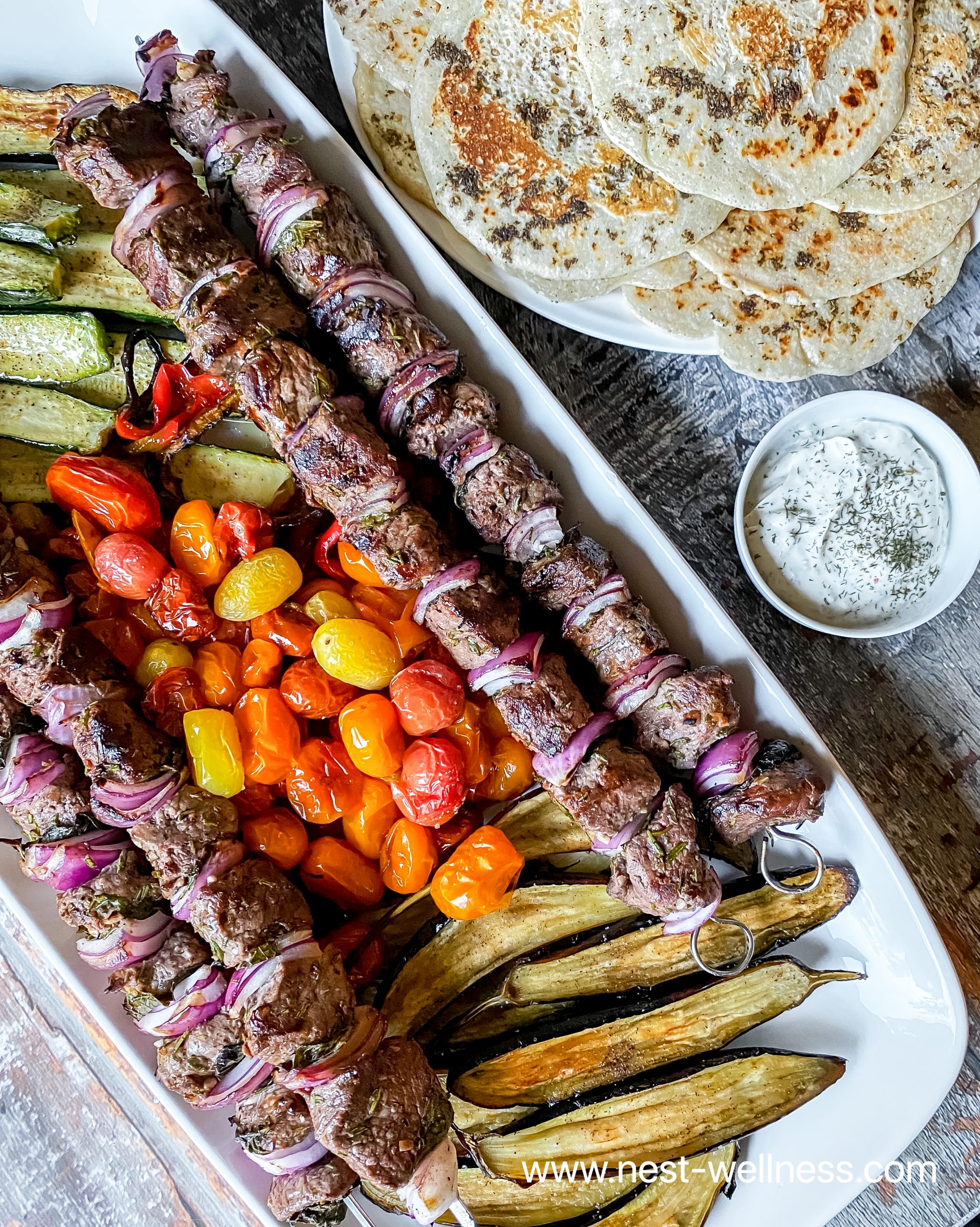 Tzatziki is a dish that originated in Southeast Europe and the Middle East though it is also very popular in North America. Different cultures prepare tzatziki differently by adding different herbs though they all taste fairly similar. Traditionally tzatziki is made with sheep or goat’s milk yogurt but most often we’ll make it with Greek yogurt. Due to the popularity of plant-based diets and the widespread availability of non-dairy yogurt options, people have been making tzatziki dairy free by using non-dairy yogurts.