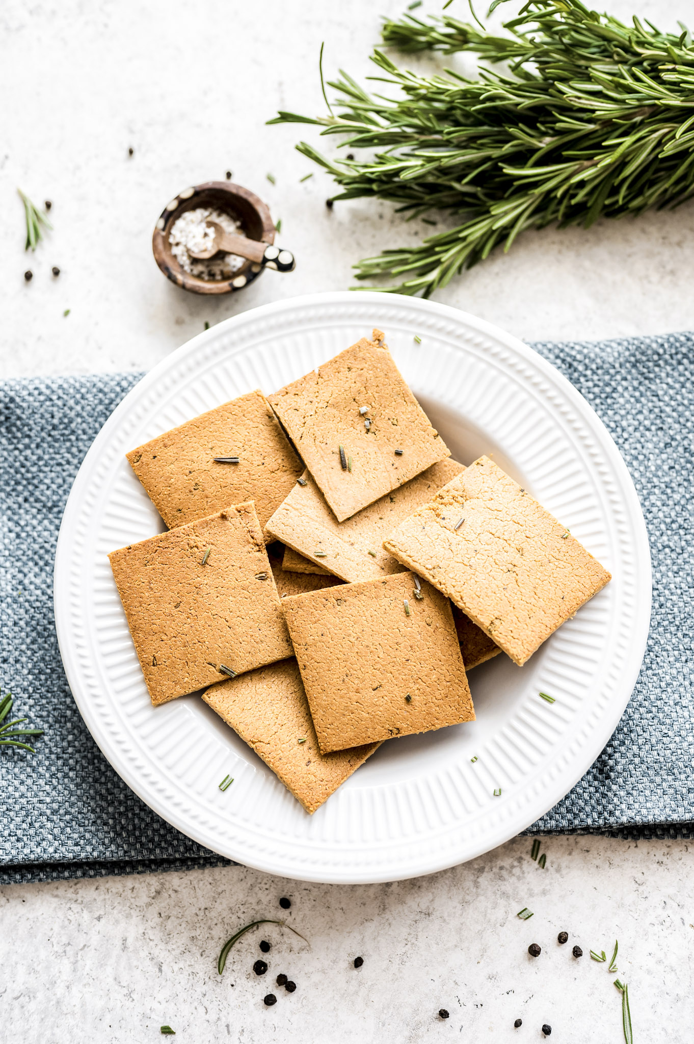 These grain-free rosemary almond crackers are everything a good cracker should be — crispy, savory, and endlessly versatile. Made with just five simple ingredients, they come together in minutes and bake to a beautiful golden crisp. The fresh rosemary adds an herby, aromatic flavor that complements the nutty almond flour base perfectly.